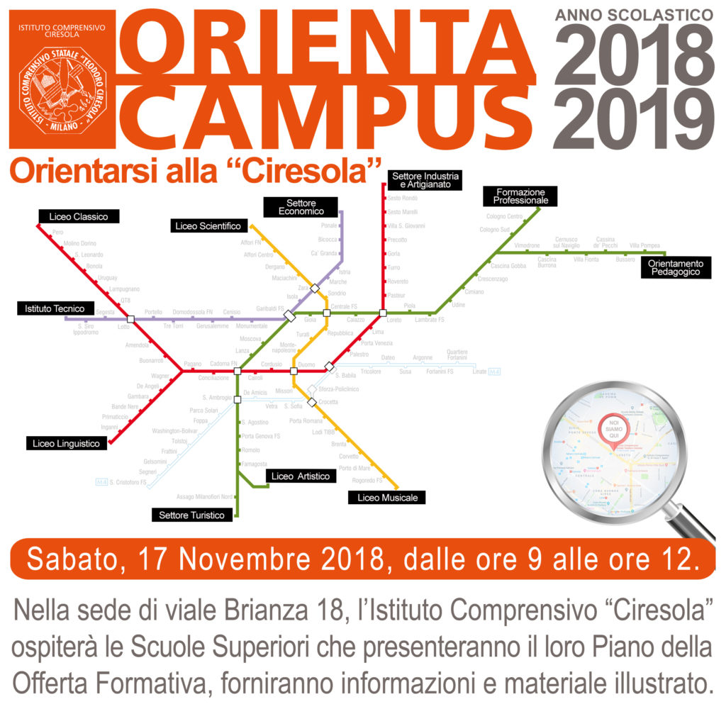 Sabato 17 novembre dalle 9 alle 12 il nostro Istituto ospiterà le Scuole Superiori che presenteranno la loro Offerta Formativa Order by Data Nome Allegati Orienta campus 2018-2019 abbinamenti classi (17 kB)Orienta Campus 2018-2019 ultima modifica (53 kB)