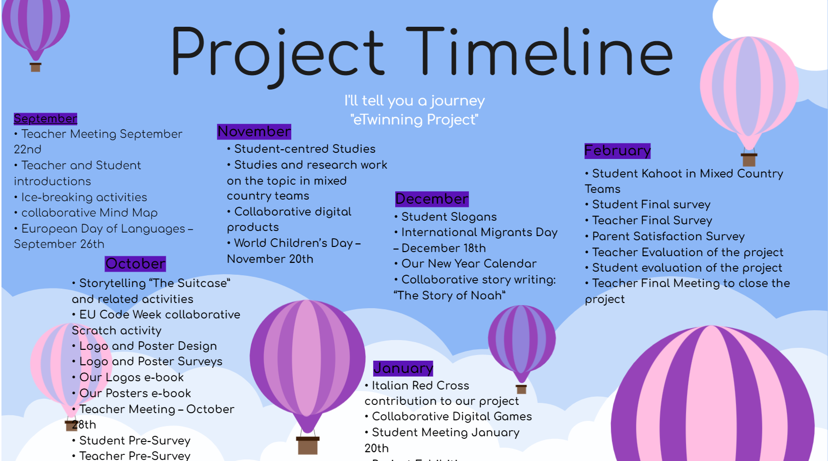 The word Journey can take on different facets of meaning. Usually, the meaning given to it is linked as much as possible to the experience of the people themselves and to their lifestyle. In the project, the thoughts on the idea of the journey, that will emerge from the students, will be considered and explored, and a discussion and comparison on the different shared interpretations will be triggered. We will start from the concrete experience of each student to contemplate, gradually, examples of journeys that open to stories of displacement, migration, and diversity. Some stories for children and the vision of some video testimonies of refugee experiences published by the International Red Cross and other humanitarian organizations such as the UNHCR will help convey these issues. Students’ critical thinking will be urged to seek solutions. ICT will help document and make the project activities more engaging and effective and will educate students on safe and critical use of the Web.